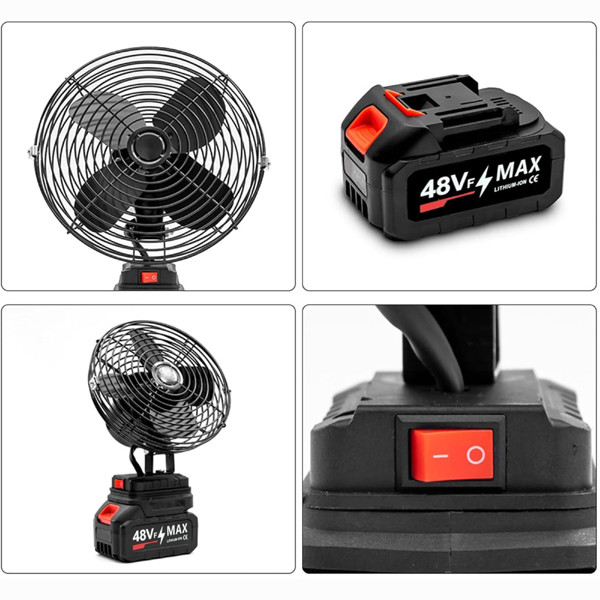 🔋 48Vf MAX Rechargeable Lithium Battery – Long-Lasting Runtime Up to 10 Hours Equipped with a high-capacity 48Vf MAX lithium-ion battery, this portable fan provides up to 10 hours of continuous cooling on a single charge (based on speed level). It's a reliable battery-powered fan for emergencies, blackouts, off-grid living, or portable power stations. Great for camping gear, travel essentials, and power outage supplies.